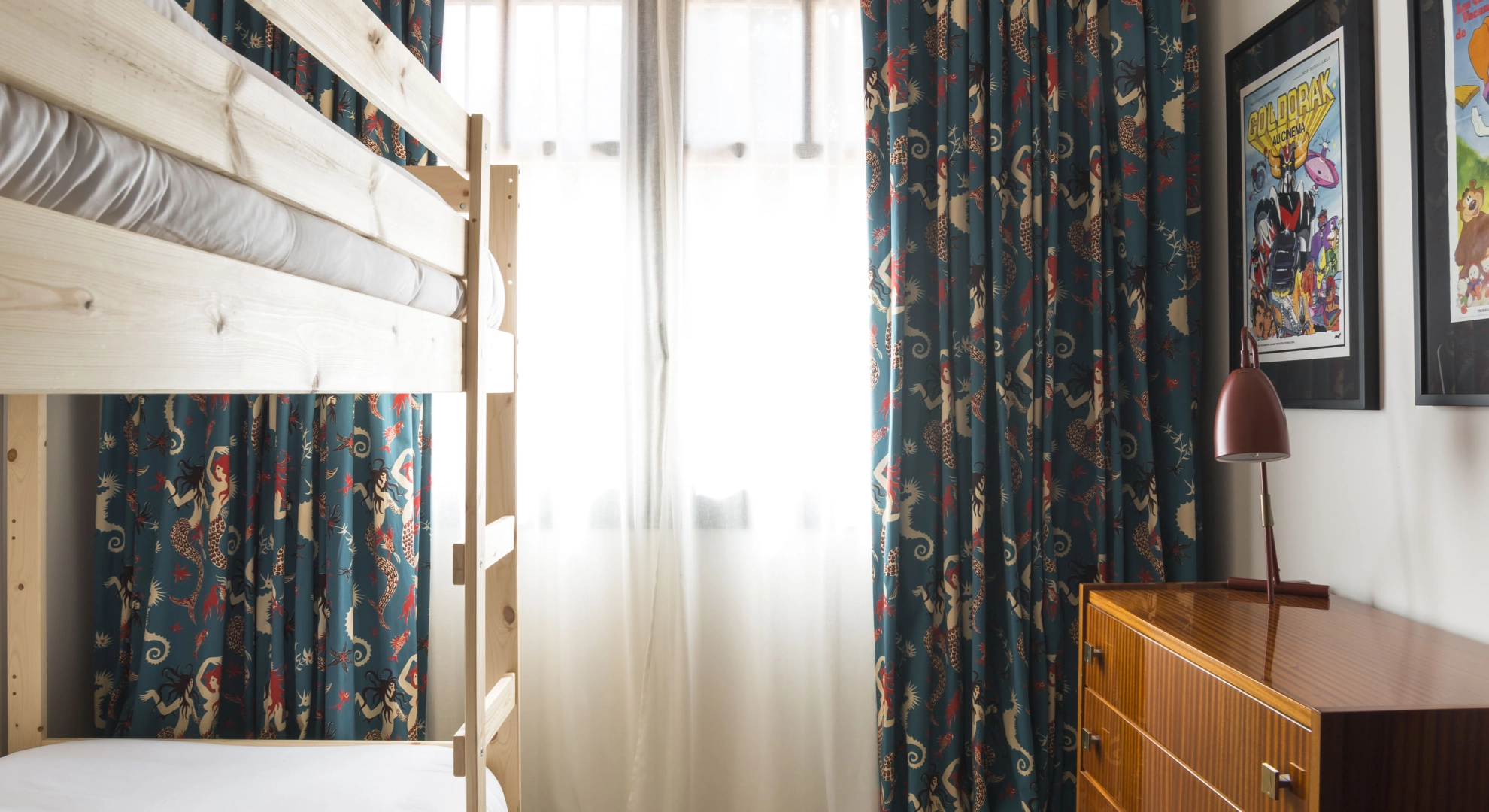 Un lit double, un lit superposé, de l’espace et du style : la chambre idéale pour venir en famille.